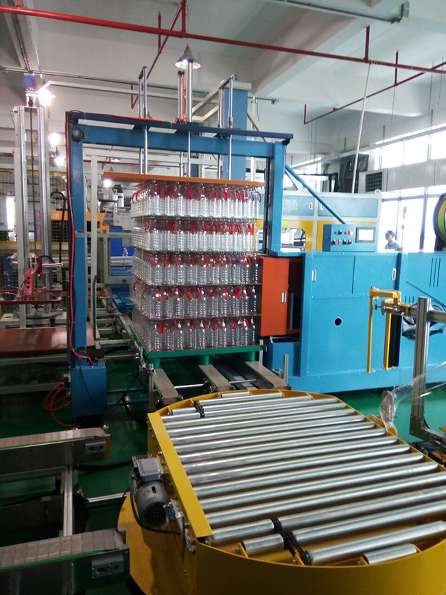 開放式弓架活動(dòng)的穿帶能將棧板與捆包物牢固地捆包在一起便于移動(dòng)及運(yùn)輸,堆滿產(chǎn)品的棧板通過輸送滾筒線可實(shí)現(xiàn)無人化捆包生產(chǎn)線。