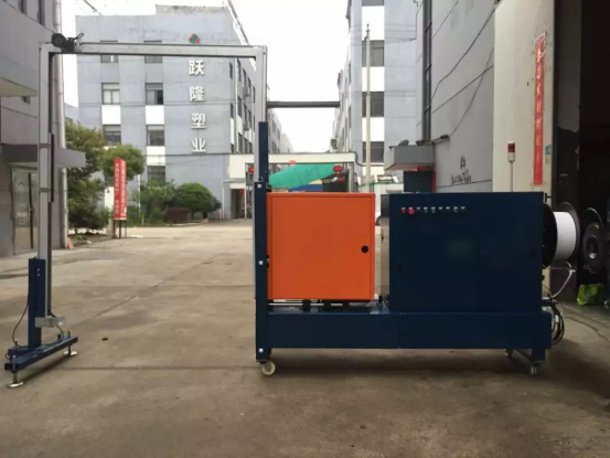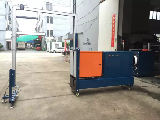 MH-107B自動(dòng)托盤穿箭打包機(jī)是一款專門針對(duì)于棧板捆包而設(shè)計(jì)的一款打包機(jī),該機(jī)具有伸縮性導(dǎo)軌,當(dāng)機(jī)器檢測(cè)到與物品需要打包時(shí),導(dǎo)軌會(huì)自動(dòng)伸出,與原有的框架形成一個(gè)封閉式的帶道,之后進(jìn)行自動(dòng)打包,當(dāng)一道作業(yè)完成之后,導(dǎo)軌會(huì)自動(dòng)退回到打包機(jī)機(jī)身下面,然后由輸送設(shè)備將物品輸送到下一工位。