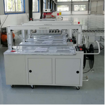 自動打包機外形設(shè)計簡單美觀;電機+減速器+凸輪+緊縮臂運作;打包緊力可調(diào),打包機運行穩(wěn)定故障少,維修方便;