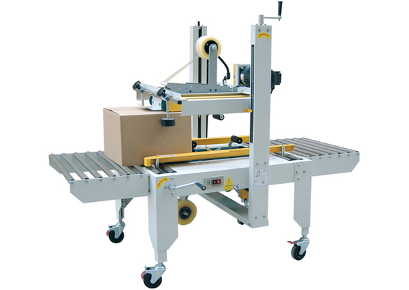 在我們拆開(kāi)包裝后,首先確定安置封箱機(jī)需要是平的地面,同時(shí)鎖住剎車腳輪,并調(diào)整腳架到合適的高度,使封箱機(jī)設(shè)備架座到水平位置。