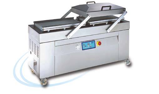 3、多功能氣調包裝機:氣調包裝機有普通封口包裝、真空包裝、真空充氣包裝幾個功能,為外抽式(又稱直抽式,抽管式等)包裝機,沒有真空工作室,將包裝袋套在充氣嘴上,并置于上、下密封裝置和上、下熱封裝置之間,包裝袋先經密封裝置密封,然后直接使包裝袋內真空或真空充氣,然后充氣嘴向后退去,最后熱封裝置工作封口。該種機型充氣量任意可調,在封口長度范圍內不受包裝體積限制,包裝效果直接可觀,缺點是真空度相對腔式真空包裝機為低,粉劑及合液體食品不適用。
