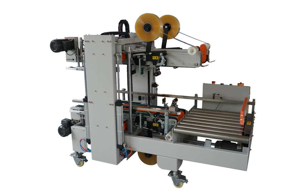 封箱機(jī)主要適用于紙箱的封箱包裝,既可單機(jī)作業(yè),也可與流水線配套使用,廣泛應(yīng)用在家用電器、紡織、食品、百貨、醫(yī)藥、化工等行業(yè)。封箱機(jī)采用膠帶對紙箱封口,經(jīng)濟(jì)快速、容易調(diào)整,可一次完成上、下自動(dòng)封箱動(dòng)作,如采用印字膠帶,更可提高產(chǎn)品形象。